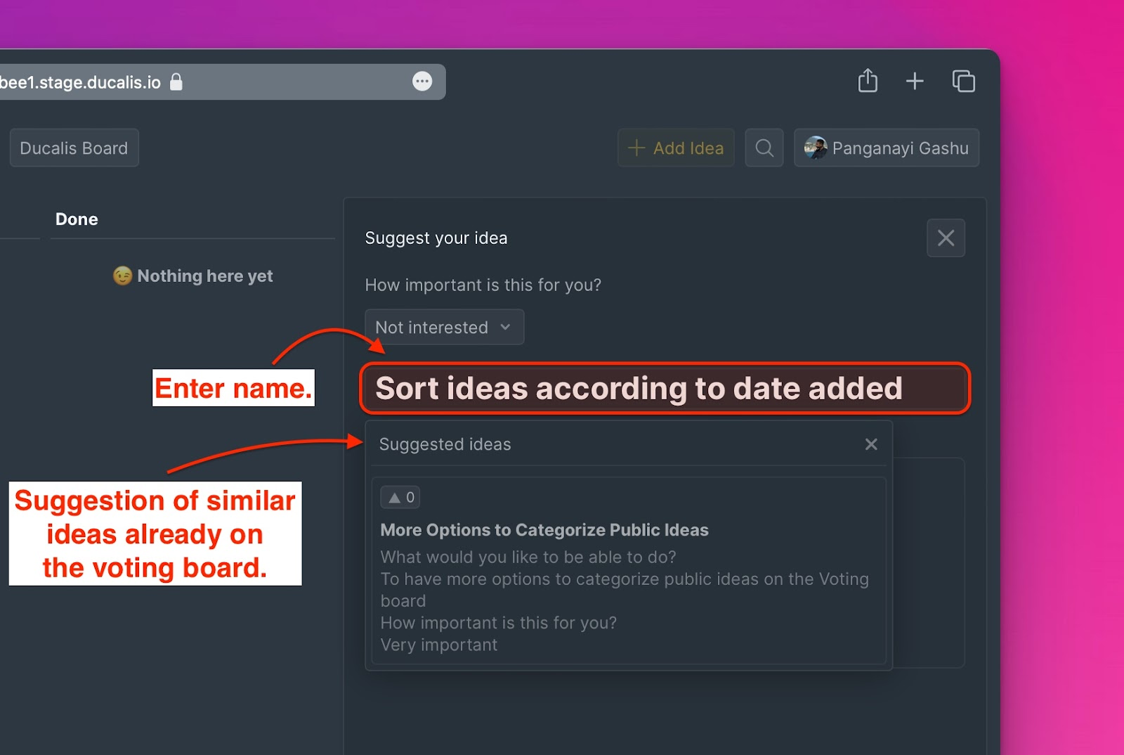 Чтобы избежать дублирующихся идей на ваших Досках идей, мы добавили возможность объединять дублирующиеся идеи.