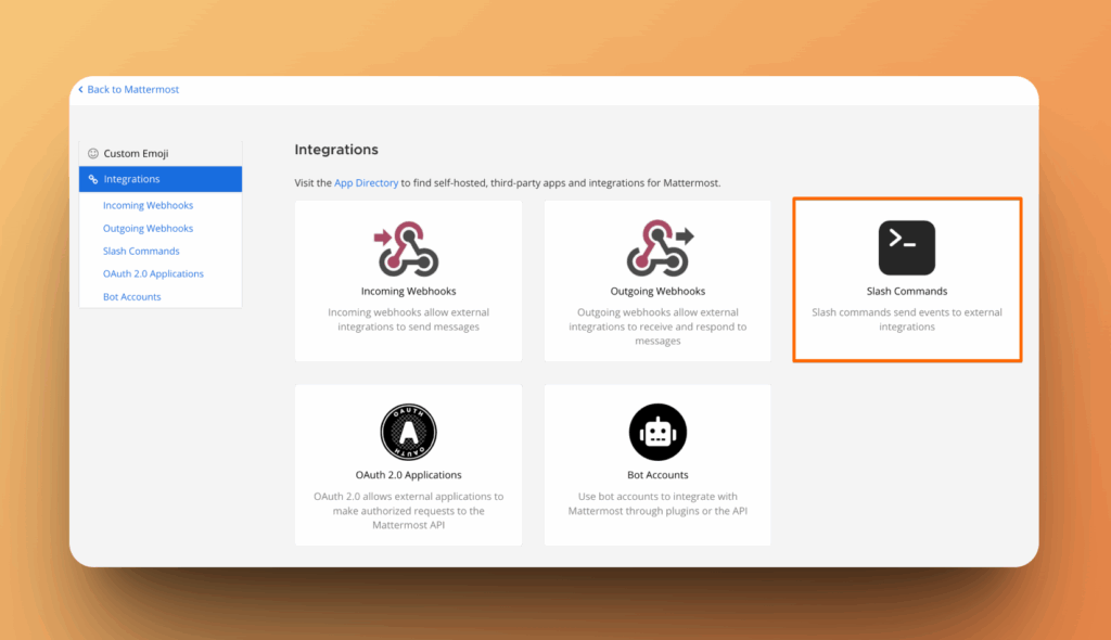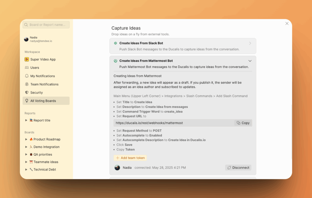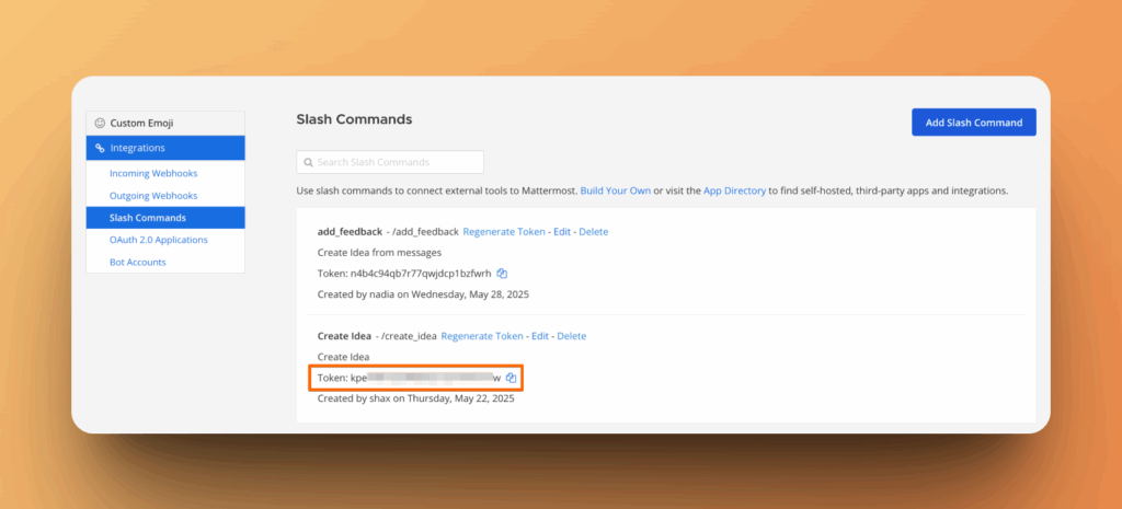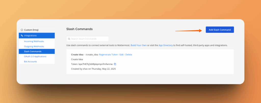 6. Для создания идей из Mattermost необходимо настроить slash-команды.
