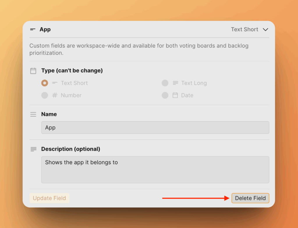 2. Чтобы удалить поле, нажмите Delete Field (Удалить поле) справа и подтвердите свой выбор.