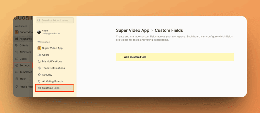 Чтобы отредактировать или удалить кастомные поля, перейдите в Settings (Настройки) > Custom Fields (Кастомные поля).