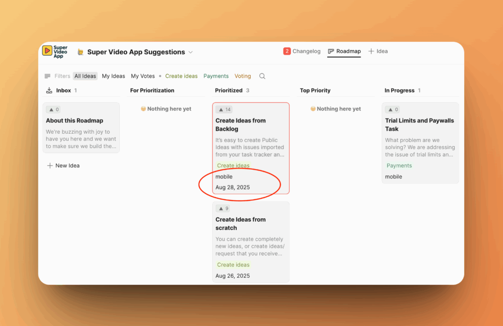 Изменение порядка кастомных полей в настройках колонок определит, как они будут отображаться на Доске идей.