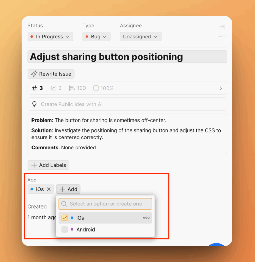 После создания поля оно появится как в карточке идеи, так и в карточке задачи.
