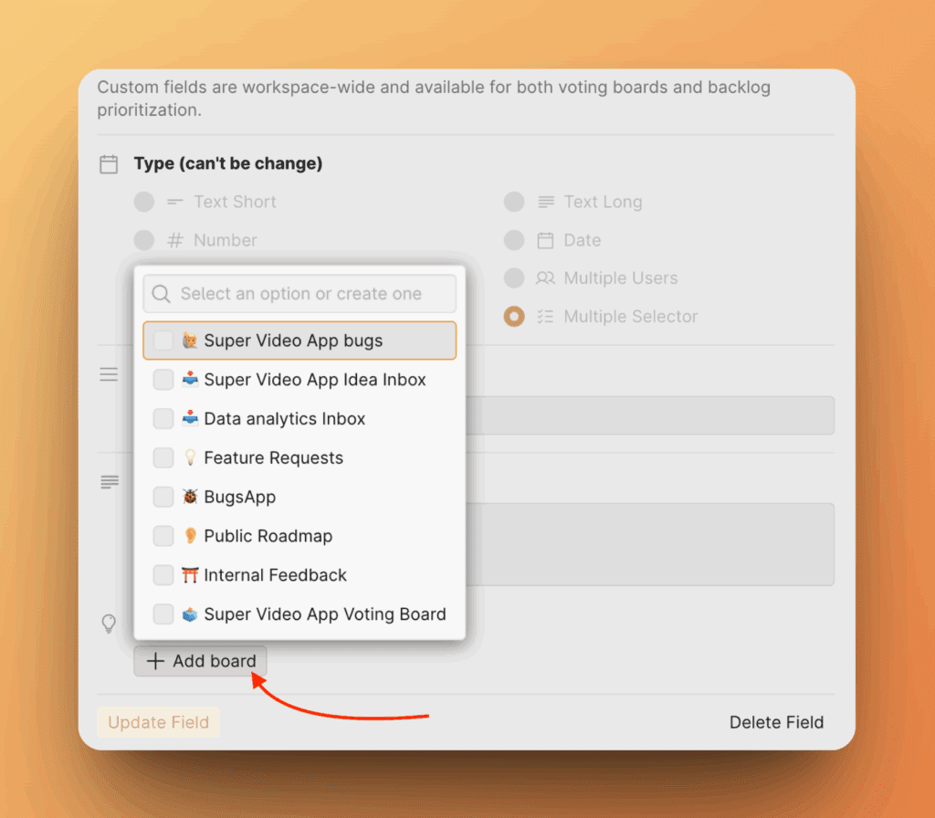 4. Выберите, где разрешить заполнение поля (только для Досок идей)