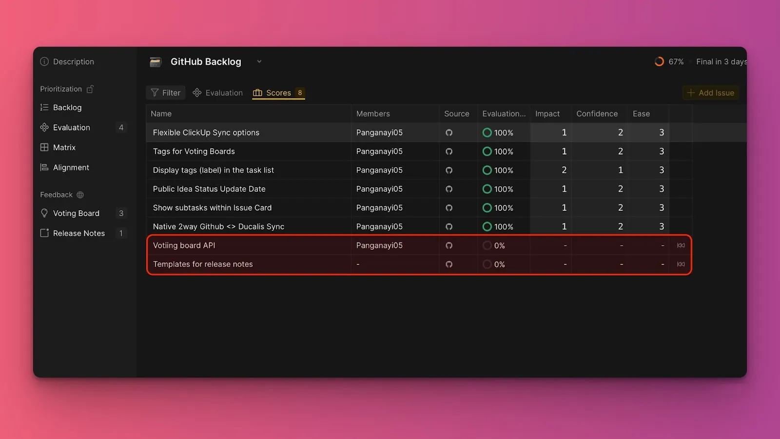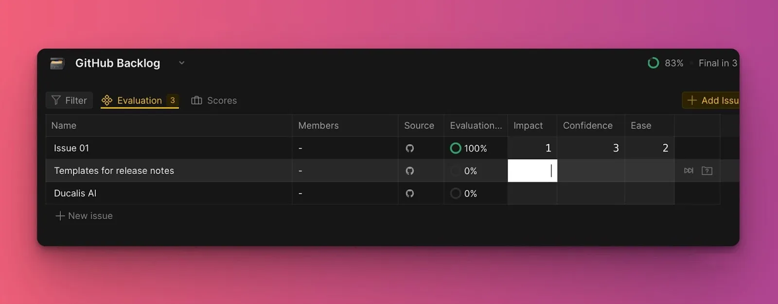 - Перейдите на вкладку Evaluation (Оценка), чтобы начать оценку задачи для приоритизации.