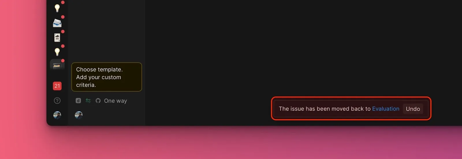 - Задача будет перемещена обратно на вкладку Evaluation (Оценка). В нижней части страницы появится подсказка, информирующая вас, что возобновлённая задача была перемещена обратно в Оценку, и опция undo (отменить).