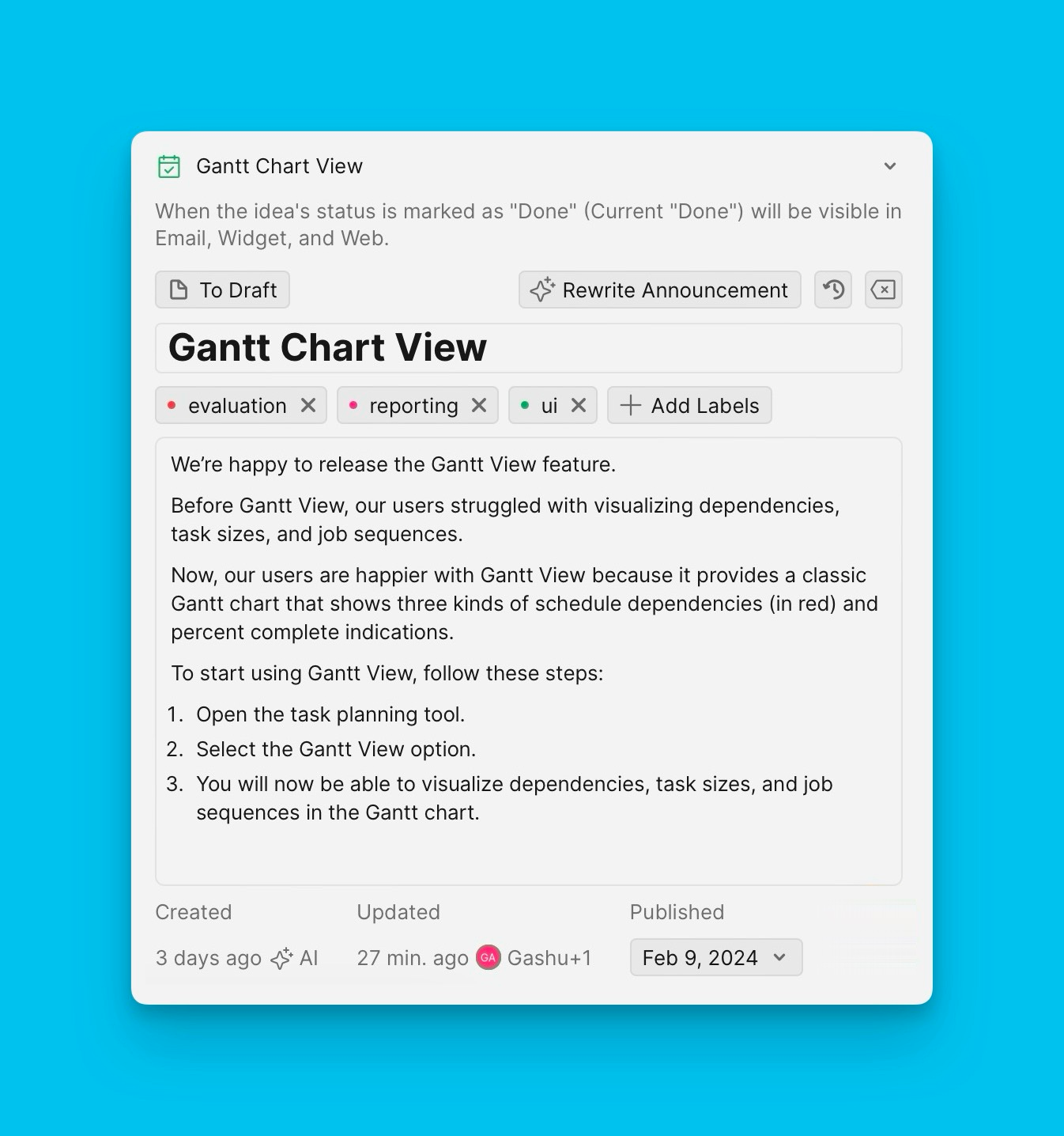 Узнайте, как добавлять анонсы в релиз ноутсы.