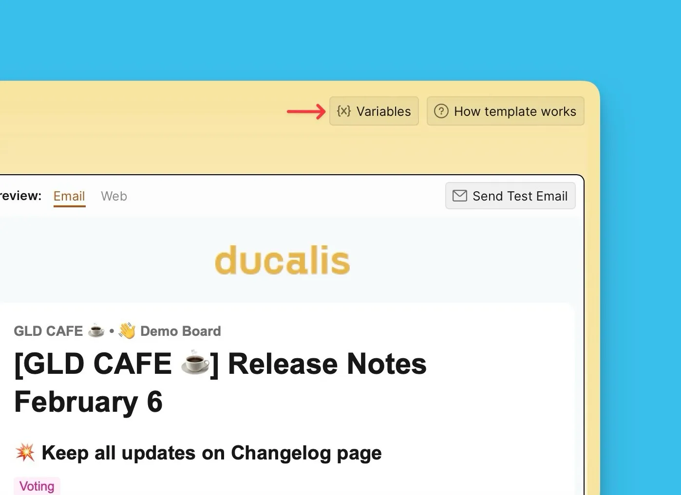 Шаблон предоставляет переиспользуемую структуру для email-анонсов релизов, обеспечивая согласованность всех анонсов без ручного копирования и вставки.